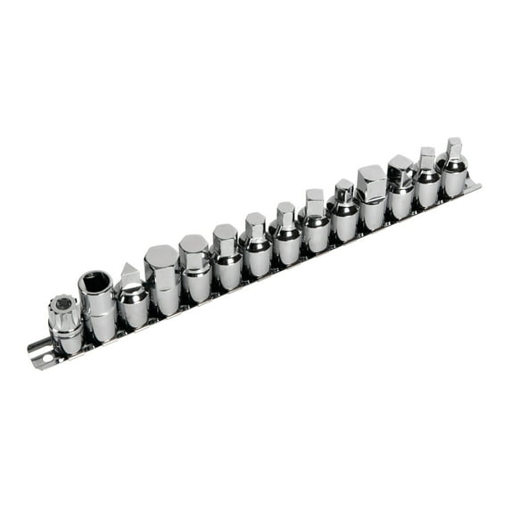 - SIZES: This 15-piece set includes a range of sizes to fit most drain plugs - with hex, square, female square, male triangle, and tamper-proof triple square socket options.