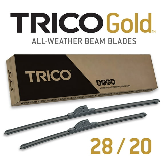 TRICO Gold All-Weather Universal Beam Windshield Wiper Blades are tested to perform over 1.5 million cycles. Trico Gold two-pack automotive replacement blades are a step up from conventional blades. These Trico wipers are durable all-weather blades that feature Memory Curve Steel for a uniform pressure that provides a clean, clear wipe on modern day curved windshields. The TRICO Gold model 18-2820 includes a 28 inch and a 20 inch beam blade packaged together in a two-pack designed specifically for your vehicle's blade lengths. Trico Gold blades feature an exclusive dual-point coupler to help eliminate streaking, and our exclusive SWIFT Easy Connection Technology which allows for quick and easy wiper replacement.