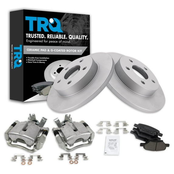 TRQ Rear Brake Pad & Rotor Kit Brake Caliper Brake Pads Brake Rotor Ceramic Premium G-Coated Fits Select 2005-2007 Chevrolet Cobalt 2004-2012 Malibu 2005-2010 Pontiac G6 2007-2009 Saturn Aura