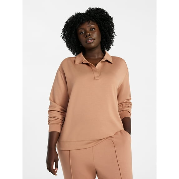 Terra & Sky Women's Plus Size Scuba Knit Layering Top with Long Sleeves, Sizes 0X-5X