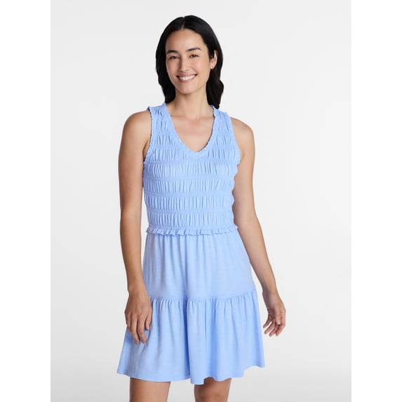 Time and Tru Women's Smocked Sleeveless Mini Dress with Ruffle Trim, Sizes XS-XXXL