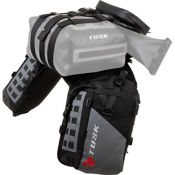 $49999current price $499.99Tusk Highland X2 Rackless Luggage System w/Medium Dry Duffel/Large Bottle Holders Standard Heat Shield Black/Grey For Suzuki V-Strom 650XT Adventure 2022-2024