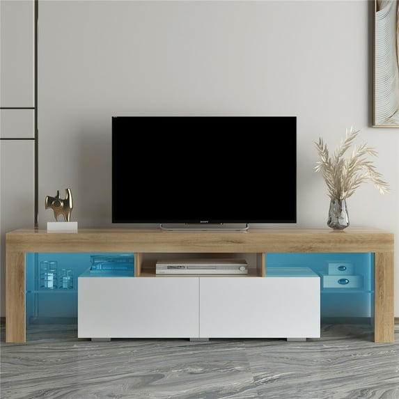 The entertainment center TV stand features an LED lights system with remote ON/OFF and color control, for up to 55-inch TV screens. Suitable for decorating your living room or bedroom, small apartment.