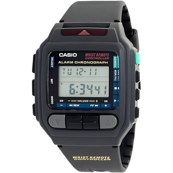 Do it all when you are wearing the Casio Remote Control Watch. It has a sleek design and is comfortable to wear. This Casio TV watch works with your VCR and cable box. It also has a stopwatch and an alarm function, as well as an automatic calendar. This remote control stopwatch features a 12/24 hour format and an hourly time signal. Get it as a thoughtful gift for a loved one on a birthday, holiday or any other occasion.