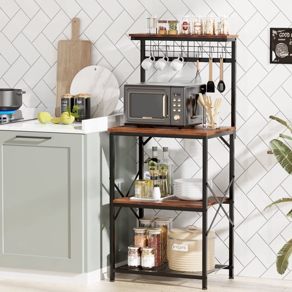 15 out of 5 Stars. 1 reviewsShipping, arrives in 3+ daysSOGES 4-Tier Kitchen Baker's Rack Utility Microwave Stand with 5 Hooks, Metal Storage Shelves, Rustic Brown $69.12