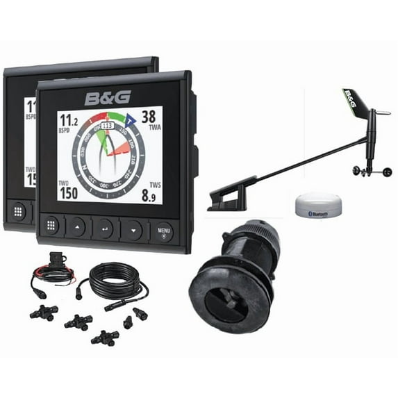B&G Dual Triton2 Speed / Depth /Wireless Wind Instrument packModel: 000-14957-002Dual Triton2 Speed / Depth /Wireless Wind Instrument pack. Includes 2x Triton2 Instrument Display, DST810 Depth/Speed/Temperature transducer, WS320 Wireless Wind Sensor and a NMEA2000 starter kit.An Optically Bonded display means absolutely zero condensation or fogging, while transflective LCD technology provides exceptional contrast and visibility — day or night — while consuming less power than traditional backlight-only displays. The flexible, NMEA 2000® certified, Triton2 Display can be integrated into a wider navigation system and also be combined with a Triton2 Pilot keypad and NAC autopilot computer to create a complete autopilot control system, featuring B&G sail-specific autopilot steering algorithms.What's in the Box:Triton2 Digital Instrument Display x 2WS320 Wireless Receiver Interface OnlyWS320 Wireless Wind Sensor.DST-810 Depth/Speed/Temp Sensor (Plastic)N2K Backbone Start Kit