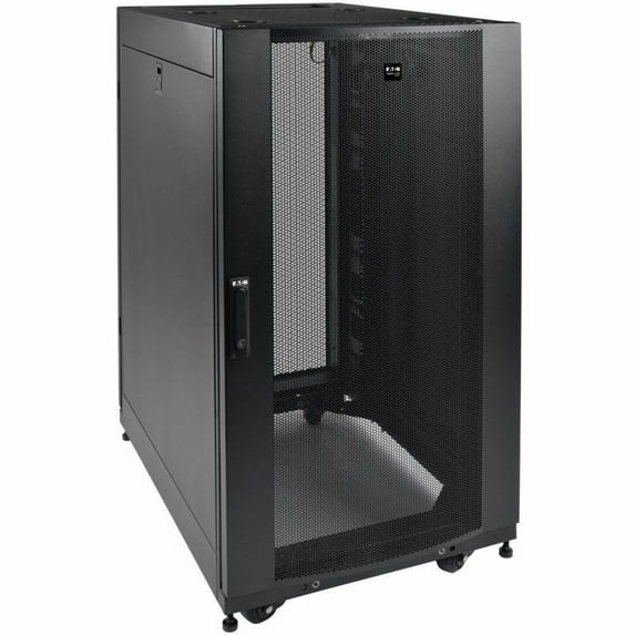 Tripp Lite by Eaton 25U SmartRack Shallow-Depth Half-Height Rack Enclosure Doors Side Panels Heavy-Duty Casters