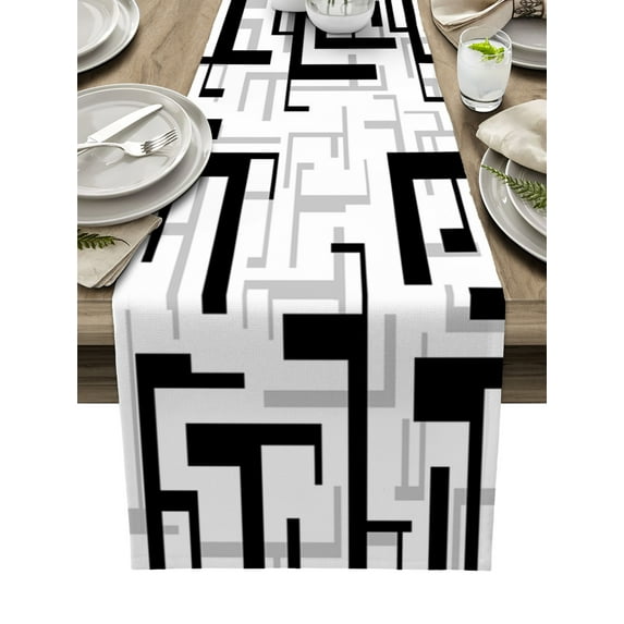 Hero image 0 of Table Runner Dresser Scarves 72 Inch Long, Modern Abstract Geometric Art Linen Dining Table Runners Black Gray White Patchwork Tabletop Scarf for Wedding Holiday Party Kitchen, 0 of 7