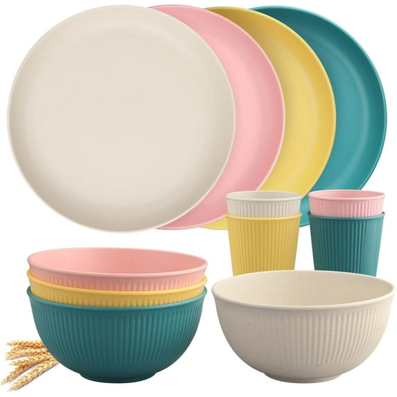 83.8 out of 5 Stars. 8 reviewsShipping, arrives in 3+ daysReduced price GoXteam 36pcs Wheat Straw Dinnerware Sets,Plastic Plates and Bowls Sets for 4, Unbreakable Plates and Bowls Sets Perfect for Cooking Family Camping Picnics $19.98 Was $25.99