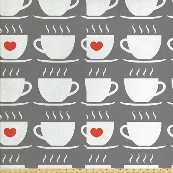 Hero image 0 of Tea Party Fabric by the Yard, Repeating Pattern of Tea Cups with Steam and Heart, Upholstery Fabric for Dining Chairs Home Decor Accents, Dimgray Vermillion by Ambesonne, 0 of 4