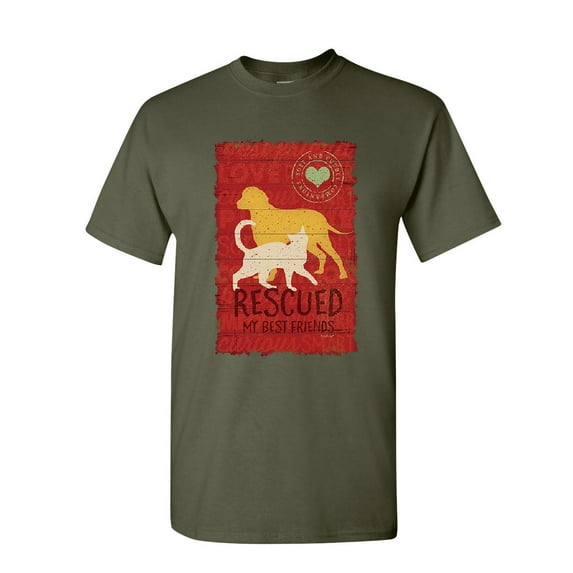 Tee Hunt Rescued My Best Friends T-Shirt Animal Shelter Dog Cat Lovers Mens Shirt, Military Green, 4X-Large