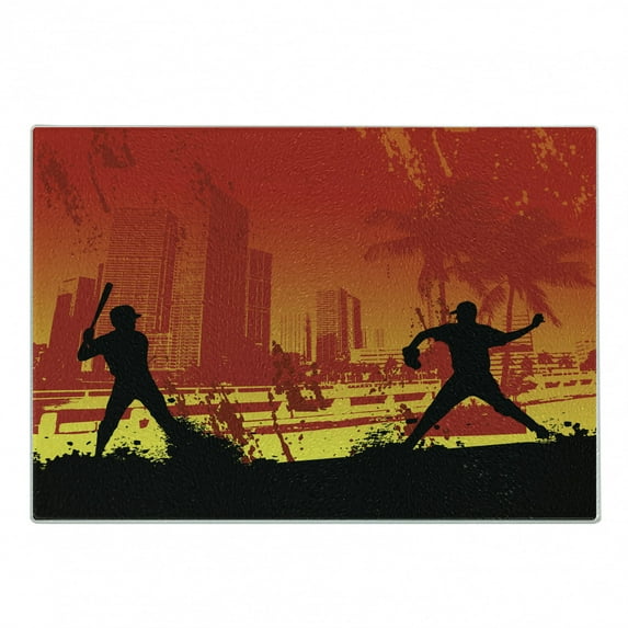 Hero image 0 of Teen Room Cutting Board, Men Playing Baseball in the Town City Park Tall Buildings Urban Scenery, Decorative Tempered Glass Cutting and Serving Board, Small Size, Red Yellow Black, by Ambesonne, 0 of 1