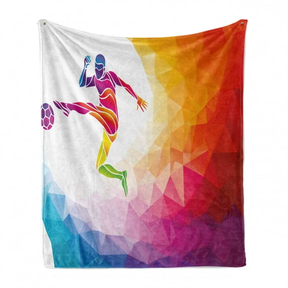 Teen Room Soft Flannel Fleece Throw Blanket, Fractal Soccer Player Hitting the Ball Polygonal Abstract Illustration, Cozy Plush for Indoor and Outdoor Use, 60" x 80", Multicolor, by AmbesonneTeen Room Soft Flannel Fleece Throw Blanket Fractal Soccer Player Hitting Ball Polygonal Abstract Illustration Cozy Plush Indoor Outdoor Use 60 x 80Teen Room Soft Flannel Fleece Throw Blanket Fractal Soccer Player Hitting Ball Polygonal Abstract Illustration Cozy Plush Indoor Outdoor Use 50 x 70Teen Room Soft Flannel Fleece Throw Blanket Fractal Soccer Player Hitting Ball Polygonal Abstract Illustration Cozy Plush Indoor Outdoor Use 50 x 60Teen Room Soft Flannel Fleece Throw Blanket Fractal Soccer Player Hitting Ball Polygonal Abstract Illustration Cozy Plush Indoor Outdoor Use 70 x 90