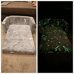 - Night-Glowing Children's Sofa: Teler Glow-in-The-Dark Dinosaur Toddler Sofa features a unique glow-in-the-dark design with playful star patterns. Simply expose the sofa to bright light or sunlight for 10-15 minutes, then move it into a dark room to witness its magical glow. The soft green light emanating in the dimness creates a dreamy ambiance for the bedroom.