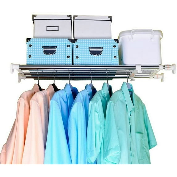 $4111current price $41.11Telescopic Wardrobe Storage Rod, Stainless Steel Hanging Rail With 73.23in Maximum Length, Stable Closet Organizer For Laundry Or Bedroom, Drying Racks
