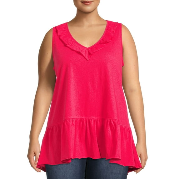 Terra & Sky Women’s Plus Size Ruffled V-Neck Tank Top