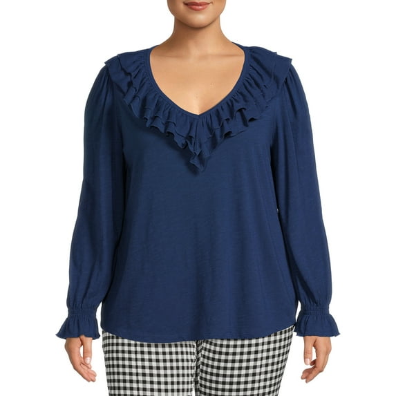 Terra & Sky Women's Plus Size Smocked Cuff Ruffle Tee