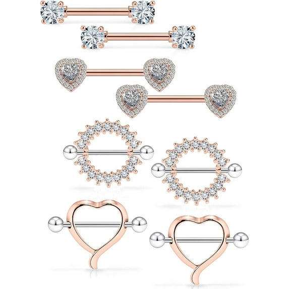 Hero image 0 of 4 Quality Pairs Surgical Steel Nipple Rings Heart Nipple Barbell Crystal CZ Ball Nipple Hoop Piercing Jewelry for Women[n920], 0 of 1