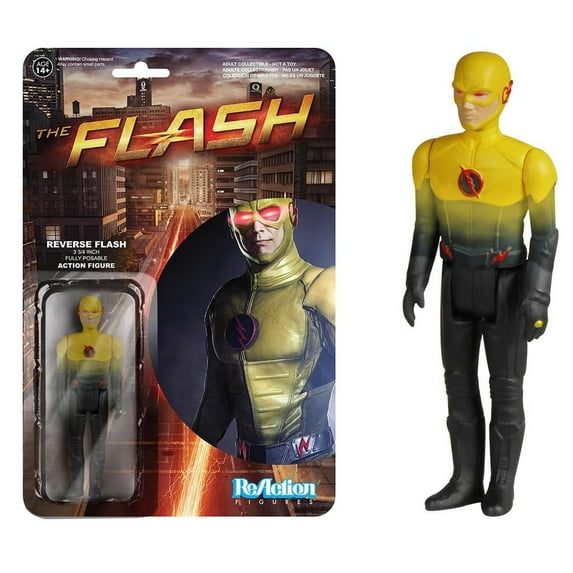 Funko delivers the DC Superheroes from the hit show The Flash as new ReAction retro action figures! Flash fans will be excited to own this 3 3/4-inch tall action figure featuring the evil speedster Reverse Flash! The Reverse Flash ReAction Figure is sculpted in a simplified retro Kenner format and has 5 points of articulation, just like the toys of the '80s! Comes packaged on a retro-style blister card. Collect them all!