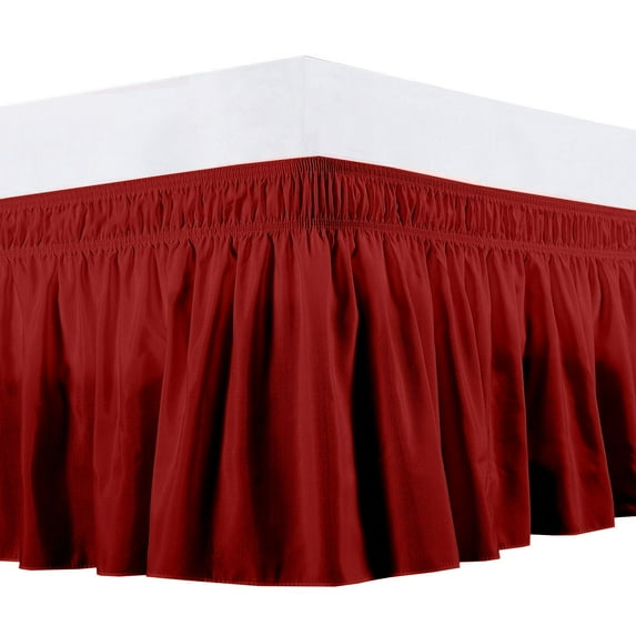 104.7 out of 5 Stars. 10 reviewsSave withShipping, arrives tomorrowSiloon Wrap Around Ruffled Bed Skirt with Adjustable Elastic Belt - 15 Inch Drop Easy to Put On, Wrinkle Free Bedskirt Dust Ruffles, Bed Frame Cover for Queen, King and C-King Size Beds,Burgundy $18.59
