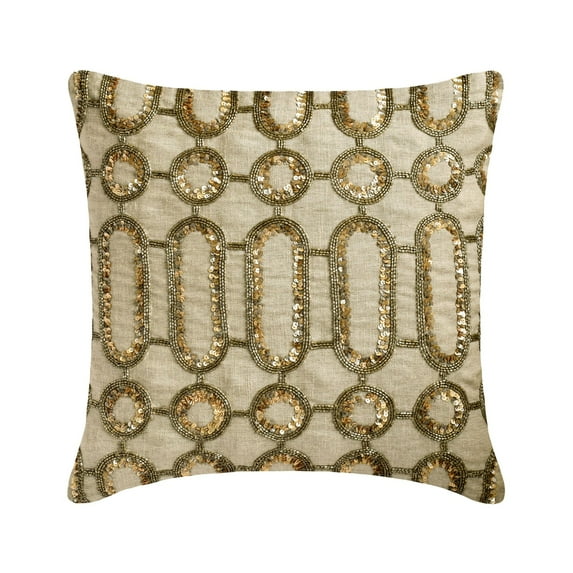 Hero image 0 of The HomeCentric Decorative Beige & Gold Pack of 2, 22x22 inch (55x55 cm) Throw Pillows, Linen Beaded & Sequins Throw Pillows For Couch, Geometric Pattern Modern Style Easter - Golden Curl, 0 of 3