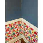 This wallpaper is beautiful and easy to work with. I used it in an unconventional way. I needed to spruce up my kitchen and do something with my scratched refrigerator. So, I wallpapered my refrigerator and achieved both. It turned out very nicely. I am so pleased with the way it brightens up my little kitchen. I had fun putting it together. It was cost effective, too. It cost me less than $20 to cover my large refrigerator. Painting it would have cost significantly more and would have been messier. I love this Pioneer Woman pattern, too.