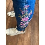 I am 5 feet tall, 138 lbs. and wear a size Medium. Obviously, as a petite woman, I knew these jeans would not be ankle length, as they are on the 5'10" model shown online, so I was happy that the Walmart website allowed me to choose my model. These jeans fit exactly as I expected, and the floral embroidery down the left leg make them so unique and pretty, and a nod to Ree's branding. If you've ordered the Pioneer Woman jeggings (as I have), these jeans feature the same fit, same waistband and same back pockets with a slightly different material composition. I was so happy to order these, as I know the Pioneer Woman clothing sells out so fast. Plus, I ordered at 12:30AM on Friday and they arrived with my Saturday mail delivery -- you can't beat that!