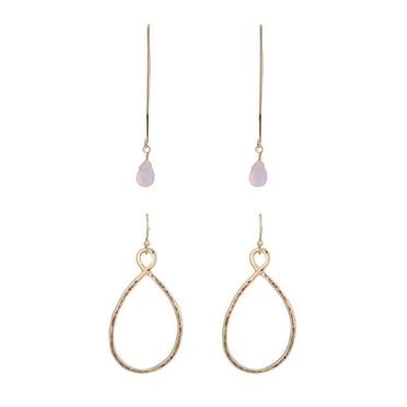 The Pioneer Woman - Women's Jewelry, Gold-tone Delicate Semi-precious and Twist Teardrop Duo Earring Set