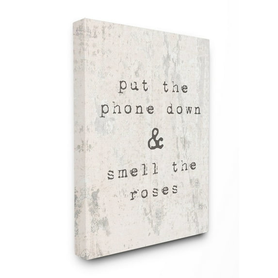 The Stupell Home Decor Collection Put Phone Down and Smell the Roses Wall ArtThe Stupell Home Decor Collection Put Phone Down and Smell the Roses Wall ArtThe Stupell Home Decor Collection Put Phone Down Smell Roses Typography Stretched Canvas Wall Art 30 x 1 5 x 40The Stupell Home Decor Collection Put Phone Down and Smell the Roses Wall Art