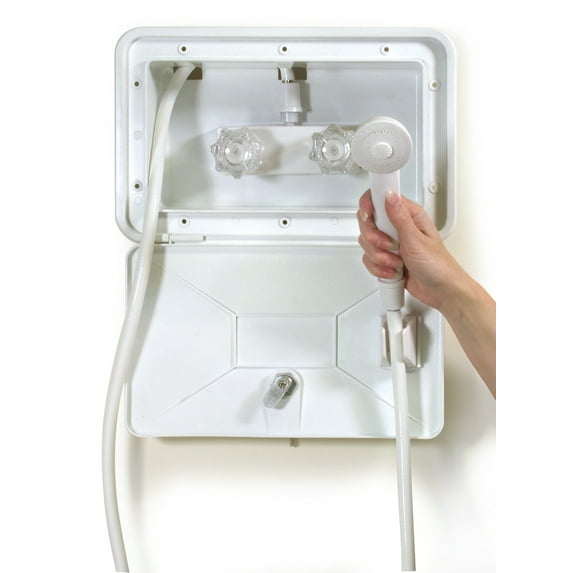 - Versatility: Designed to be used in RVs and boats, Thetford's Exterior Shower box can even be used at home