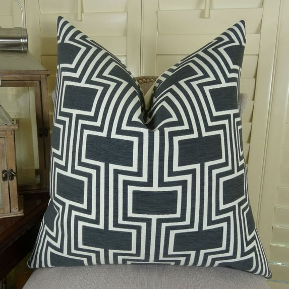 Thomas Collection Black White Geometric Trellis Luxury Throw Pillow - 11208