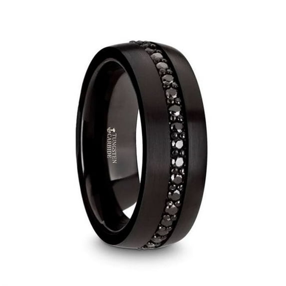Thorsten VALIANT Black Tungsten with Black Sapphires Wedding Ring for Men - Comfort Fit, Custom Engraved - Stylish Durable Wedding Band, Marriage Ring, Couple's Engagement Promise - 8mm - Size 7.5