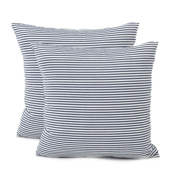 Hero image 0 of Throw Pillow Covers 26x26 - Decorative Pillows for Couch Set of 2 Rustic Linen Striped Lumbar Cushion Cover Soft Large Pillowcase for Bedding Decor, Sofa, Outdoor Farmhouse Home Navy Blue, 0 of 6