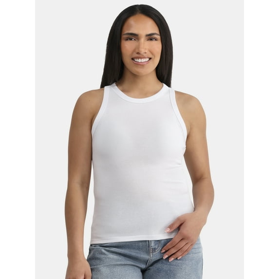 Time and Tru Women's High Neck Ribbed Tank Top, Sizes XS-XXXL