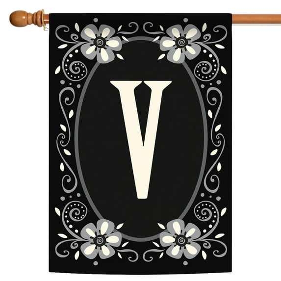 Toland Home Garden Classic Monogram-V Personalized Flower Flag Double Sided 28x40 Inch