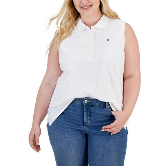 Tommy Hilfiger Womens Plus Collared Ribbed Trim Polo TopTommy Hilfiger Womens Plus Collared Ribbed Trim Polo Top