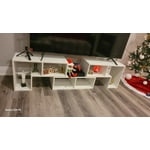 I love this tv stand set. I absolutely adore being able to arrange it whatever way I want, there are some pretty fun combinations you can do too. the shelves are sturdy, and it was easy to build.