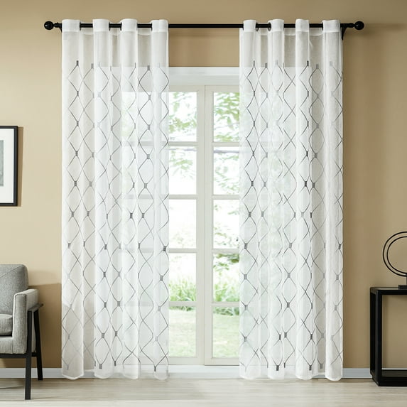 Hero image 0 of Topfinel White Sheer Curtains 90 Inches Long Gray Embroidered Diamond Grommet Window Curtains for Living Room Bedroom, 2 Panels, 0 of 6