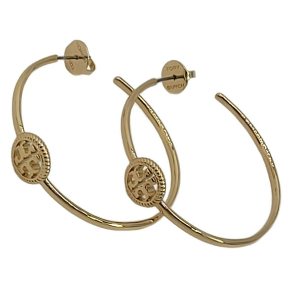 Tory Burch 137720 Tory Gold Tone Rope Logo Women's Hoop Earrings