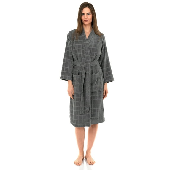 - Women's Cotton Terry-Lined soft and absorbent kimono bathrobe.