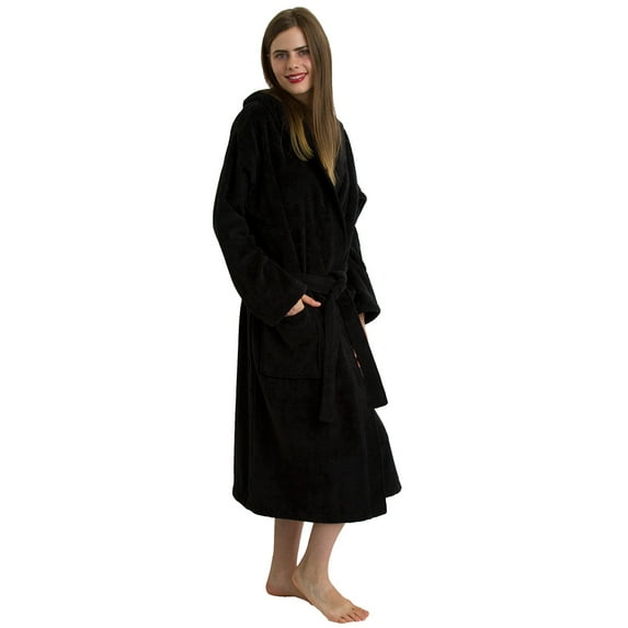 - Unisex hooded velour bathrobe.