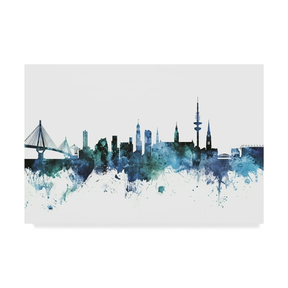 This ready to hang, gallery-wrapped art piece features a blue watercolor skyline of Hamburg, Germany.Art and design were always Michael's favorite subjects at school. He was fortunate to land a job as a graphic designer at one of London's most prestigious publishing companies. After 12 years Michael Tompsett made the decision to pursue a full-time career creating his own work. The freedom and time to be able to focus solely on his own projects has been a wonderful experience. Although Michael likes to experiment with different styles and subjects, his main focus is on map art. He enjoys looking for unique and interesting ways to depict something which is very familiar. Maps are visual representations of the world we live in, a world which is incredibly diverse. Apart from maps, Tompsett also creates urban landmark and cityscape designs.