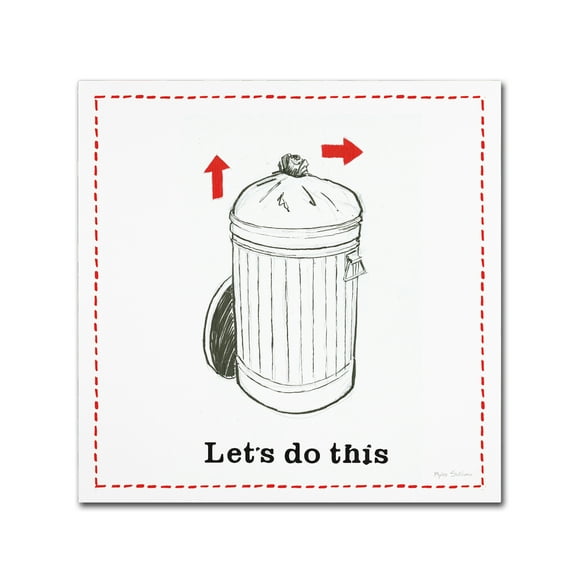 - This ready to hang, gallery-wrapped art piece features a diagram of a trash can with the caption "Let's do this".