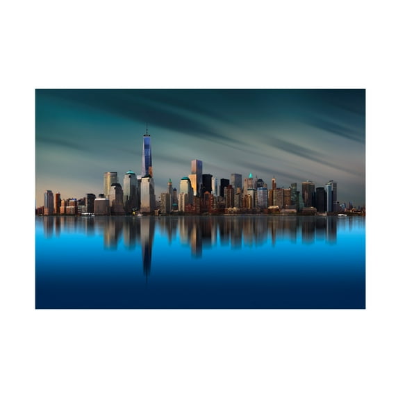 This ready to hang, gallery-wrapped Wall Décor Living Room Canvas by Trademark Fine Art features a vibrant blue cityscape with towering skyscrapers against the horizon. that'll look great in any bedroom, kitchen, bathroom, or apartment. Whether it's contemporary, rustic, modern, or traditional style wall décor, Trademark Fine Art offers a variety of high-quality, carefully built wall art that will surely complement any style with art themes that range from fascinating abstracts to breathtaking landscapes. Each bathroom wall art canvas is printed on durable cotton poly blended canvas using Giclee, a process for creating high-quality fine art reproductions that are nearly indistinguishable from the original piece. From the bedroom to the living room, or even the office, Trademark Fine Art makes professionally handcrafted, ready to hang wall décor that will be admired for years to come.