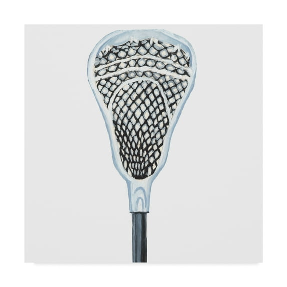 This ready to hang, gallery-wrapped art piece features a lacrosse stick over a white background.