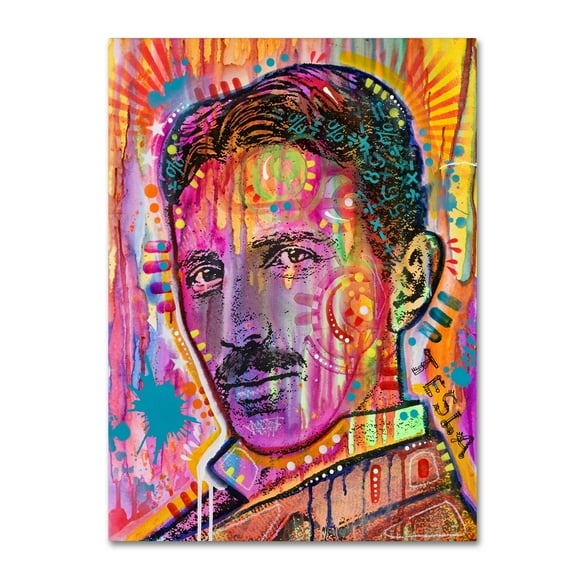 - This ready to hang, gallery-wrapped art piece features a colorful, psychedelic portrait of Nikola Tesla.