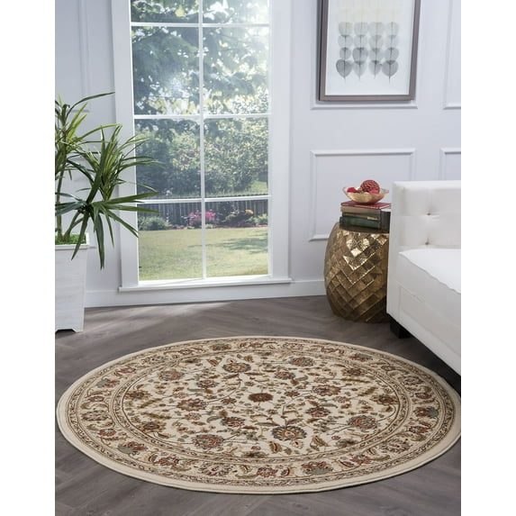 Hero image 0 of Traditional Area Rug (5'3'' Round) Oriental Ivory, Gold Indoor Round Easy to Clean, 0 of 6