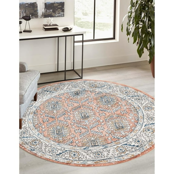 Traditional Jeopok Collection Area Rug Salmon Pink - 10' Round