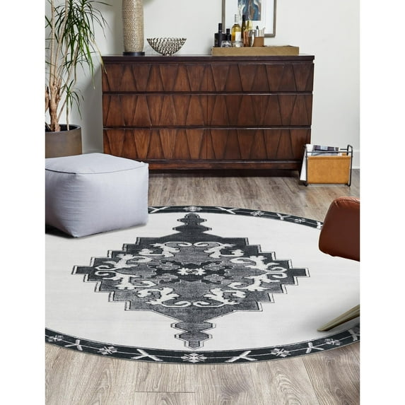 Hero image 0 of Traditional Rine Collection Area Rug 3'6" Round - Black, 0 of 5