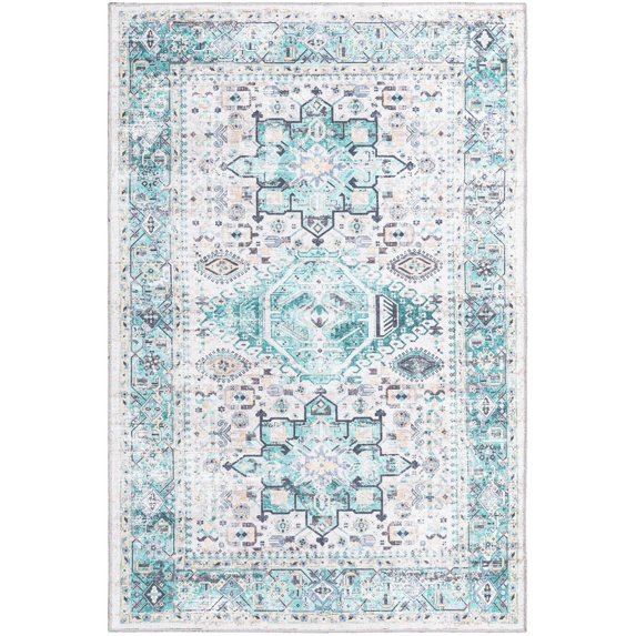 Traditional Tira Collection Area Rug 4'x6' - Aqua-Green